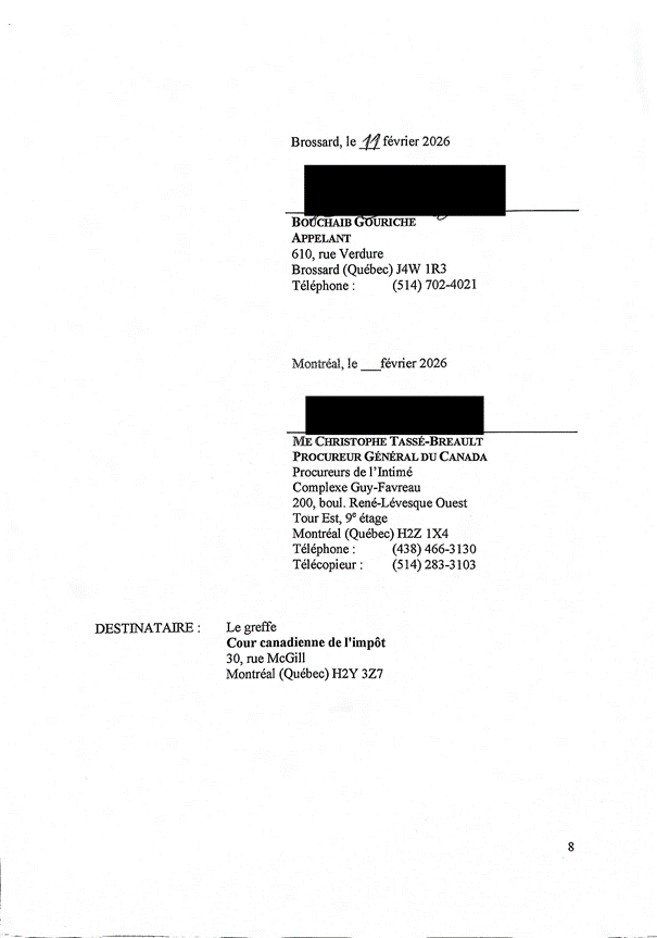 [4] À l’audience, M. Gouriche s’est représenté seul. L’intimé a présenté sa preuve en premier et a appelé 2 témoins, soit M. Nicolas Raymond, le vérificateur à l’Agence du revenu du Canada (l’« ARC »