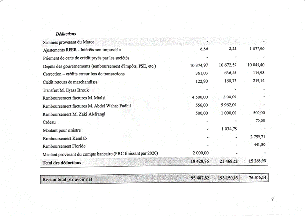 (vi)Les sommes provenant du Maroc refusées par le Ministre (comme déduction dans les redressements).