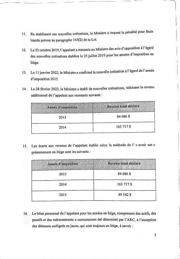 (iii)Pour l’année d’imposition 2014, le revenu imposable non déclaré est établi au montant de 124 387,54 $ et non pas de 163 717,03 $ (réduction de 39 329,49 $); et